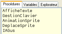 Navigateur de procéduresCet outil affiche la liste de toutes les procédures déclarées dans le fichier source en cours d'édition. En cliquant sur un élément de cette liste, le curseur changera immédiatement pour aller à la déclaration de cette procédure.